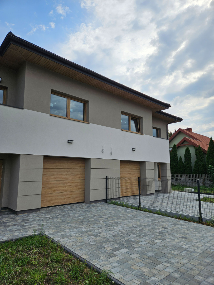Dwa domy w zabudowie bliźniaczej, łączące w sobie elegancję i funkcjonalność współczesnego designu. Przemyślane rozmieszczenie przestrzeni, dwa piętra oraz duży strych.